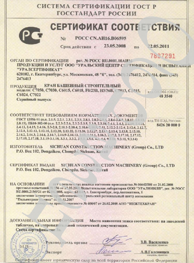 C7050塔机被法国科技质量监督评价委员会推荐为高质量产品;C7050塔机被中国国际贸易促进委员会列为中国进入WTO推荐产品。