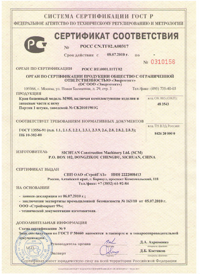 M900(50t)塔机通过型式试验;