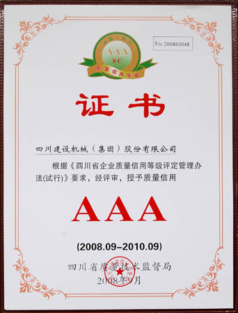 1月 四川省质量技术监督局授予质量信用AAA证书;