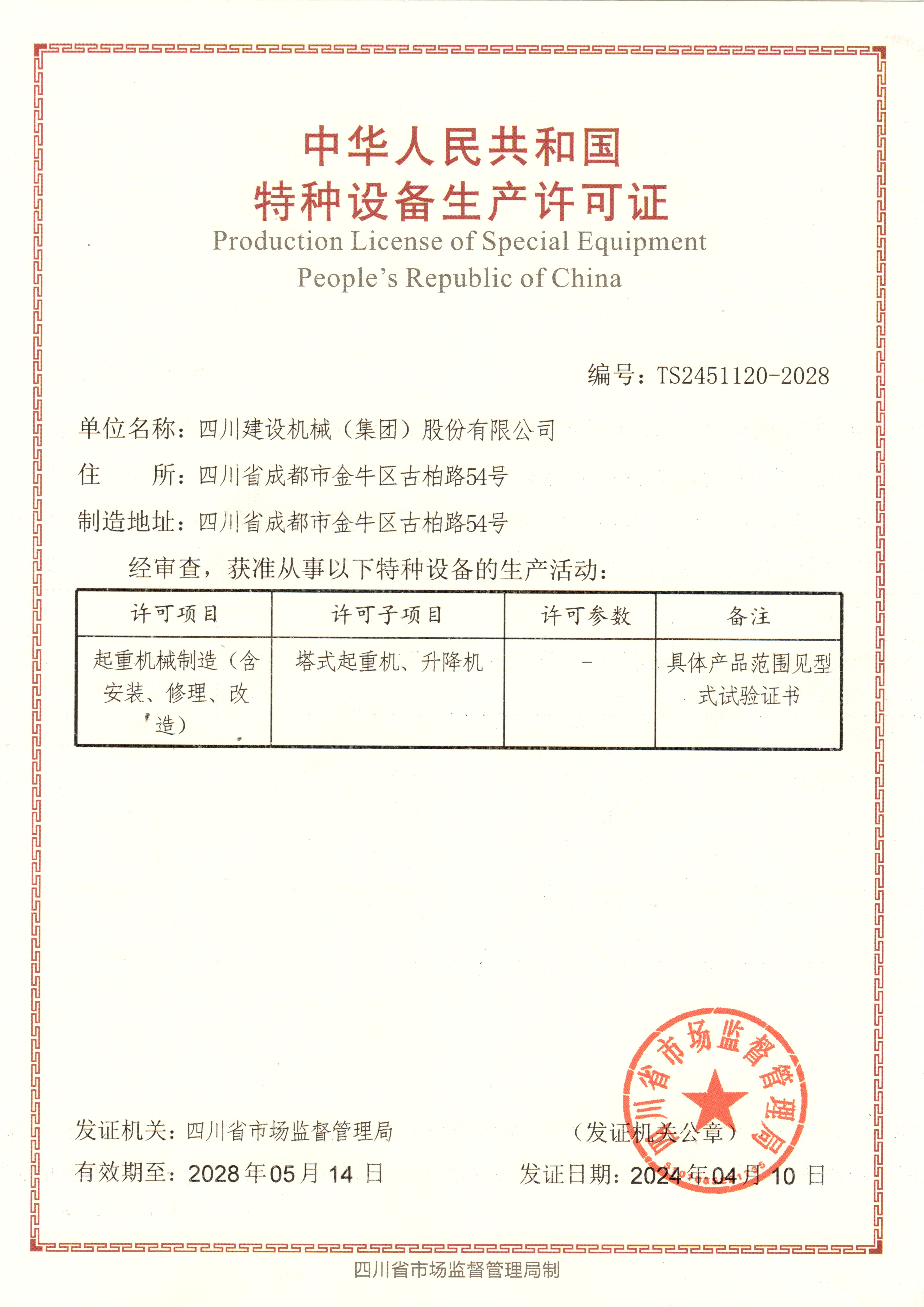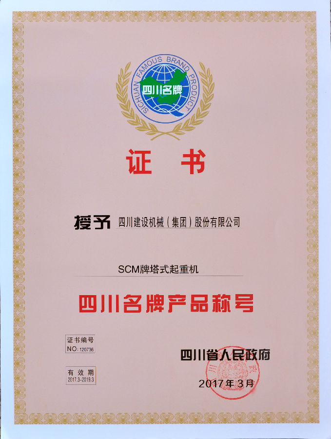 3月 SCM牌塔式起重机获“四川名牌产品称号”;