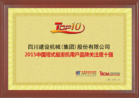 1月 获“2016中国塔式起重机用户品牌关注度十强”称号;