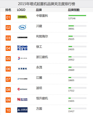 榜单是基于2015年中国路面机械网及时搏平台机械电商网海量用户对其平台内所有塔式起重机品牌、产品的浏览及在线询价次数而生成的。该榜单能在一定程度上体现行业用户对品牌及产品的偏好,同时在一定范围内反映企业品牌和产品在用户群体中的影响力和覆盖程度。