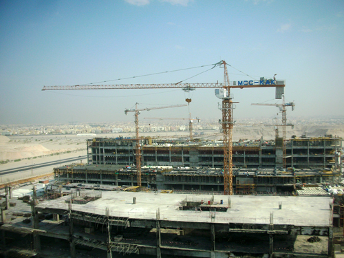 时搏(中国)共18台塔机、16台施工升降机,参与施工。其中9台C6018、9台C7030塔机